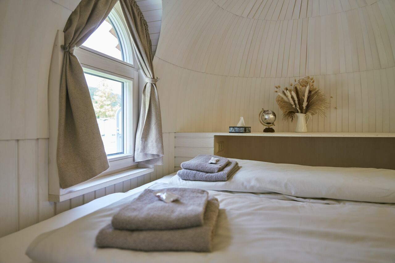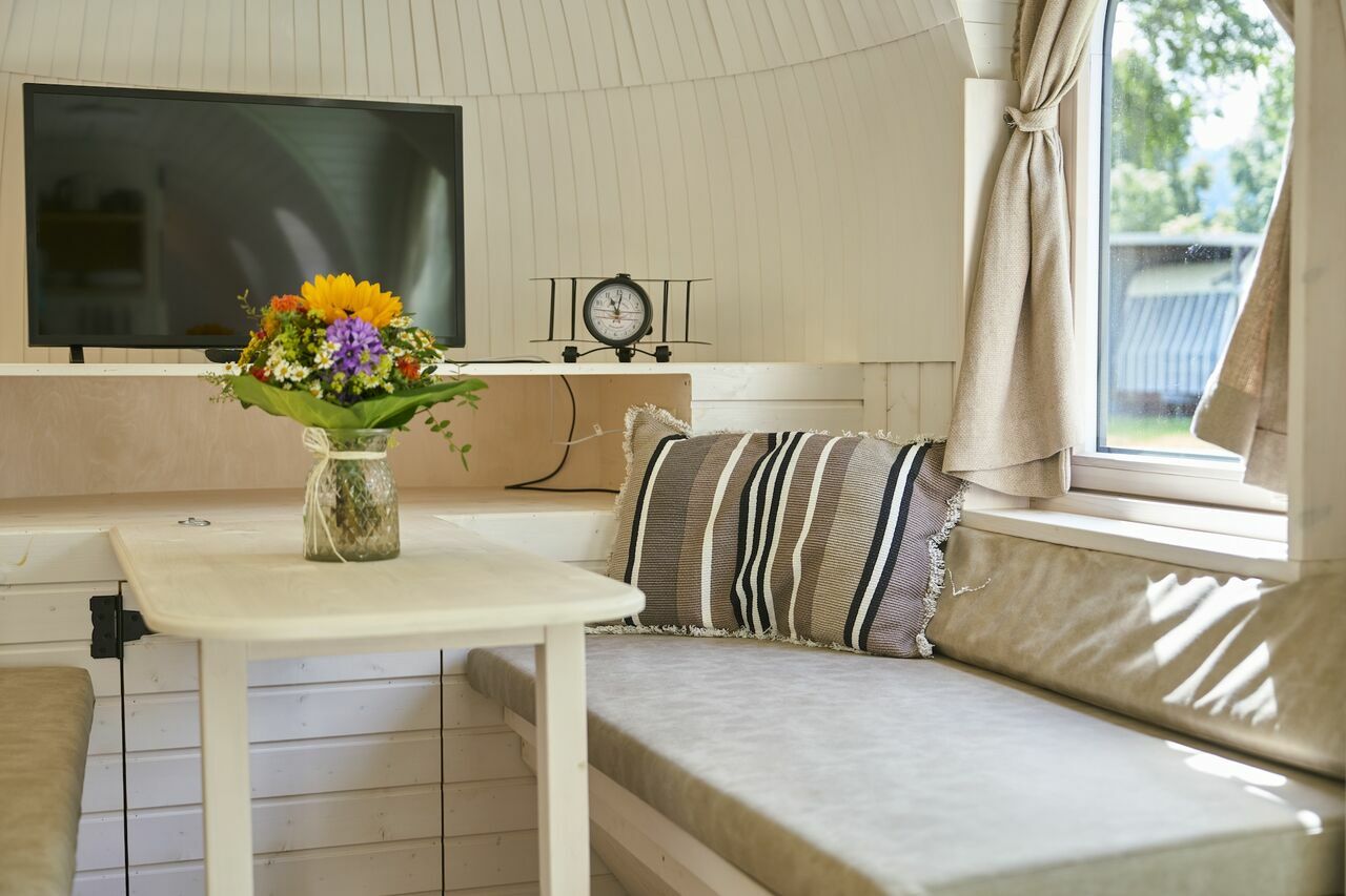 Bei den beiden Igluhuts der Kategorie 2 sorgt das große Panoramafenster für ein Maximum an natürlichem Licht und bietet einen herrlichen Ausblick.