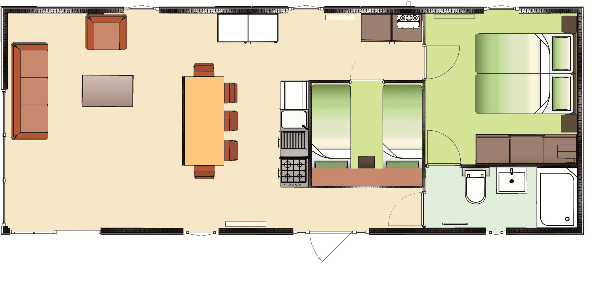 Sie haben keine Campingausrüstung und möchten trotzdem Campingurlaub machen? Hierfür stehen Ihnen vier moderne, große und sehr komfortabel ausgestattete Mobilheime zur Verfügung.
